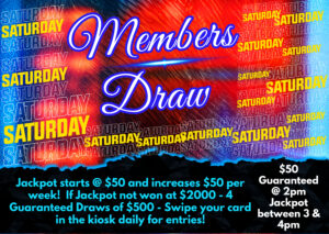 $2000 MEMBER’S JACKPOT Draw every Thursday